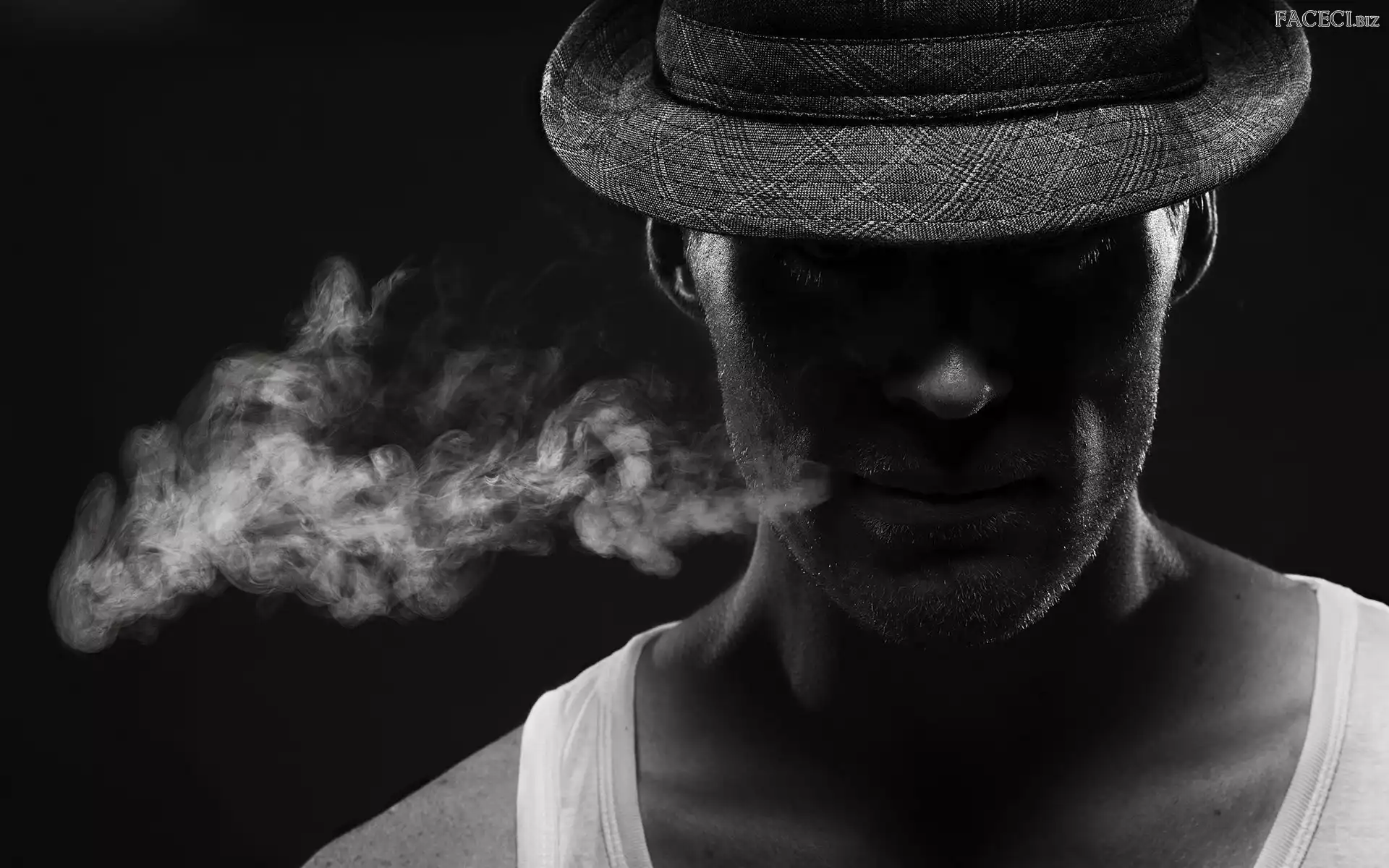 Dym, Czarno-Białe, Kapelusz - faceci.biz